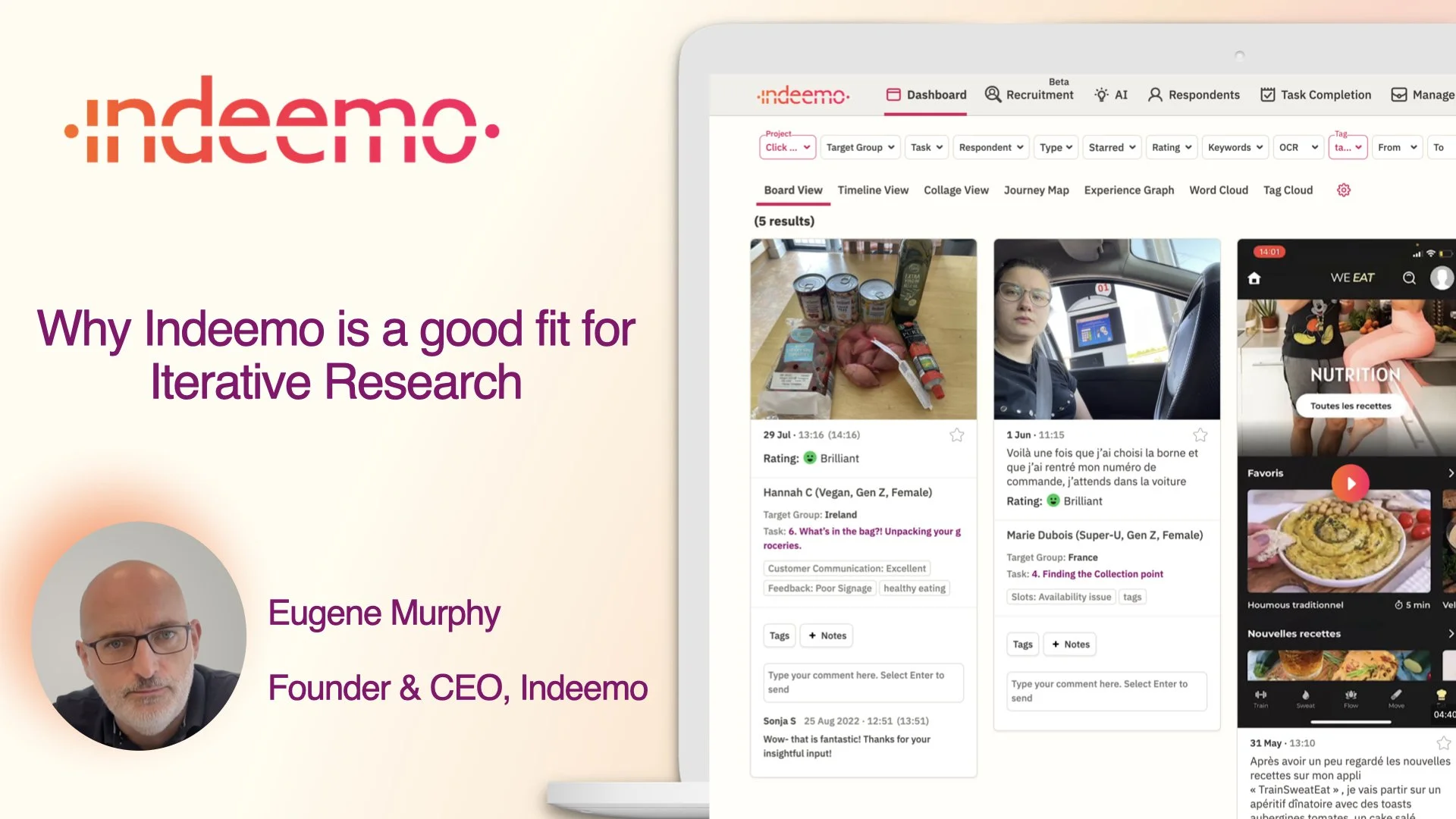 Indeemo empowers researchers to capture authentic, in-the-moment experiences through video. This approach ensures that the data collected is not just rich in detail but also reflective of genuine consumer behaviours and reactions as they happen. The platform's ability to facilitate this level of real-time, video-based data collection positions it uniquely in the market research industry.